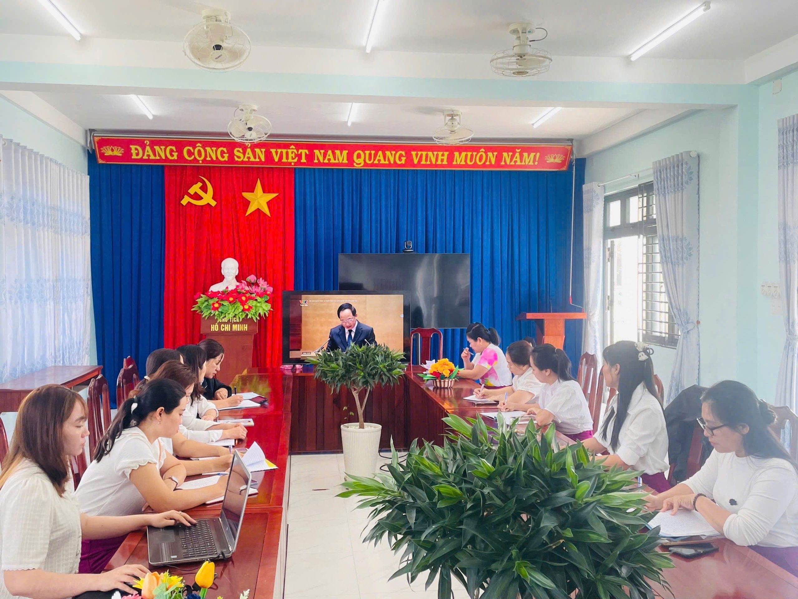 Thực hiện Công văn chỉ đạo của cấp trên về việc tổ chức học tập, quán triệt văn bản của Bộ Chính trị bằng hình thức trực tuyến, các đồng chí đảng viên trong Chi bộ Trường Mầm non Phổ Châu đã nghiêm túc tham gia đầy đủ, đúng thời gian và thành phần quy định.