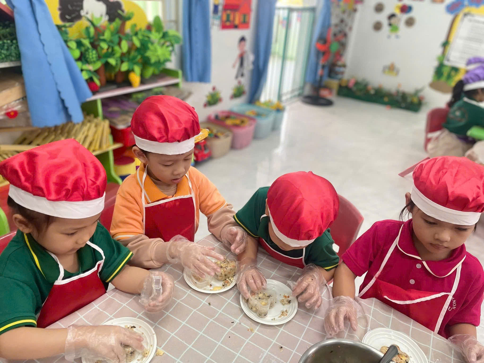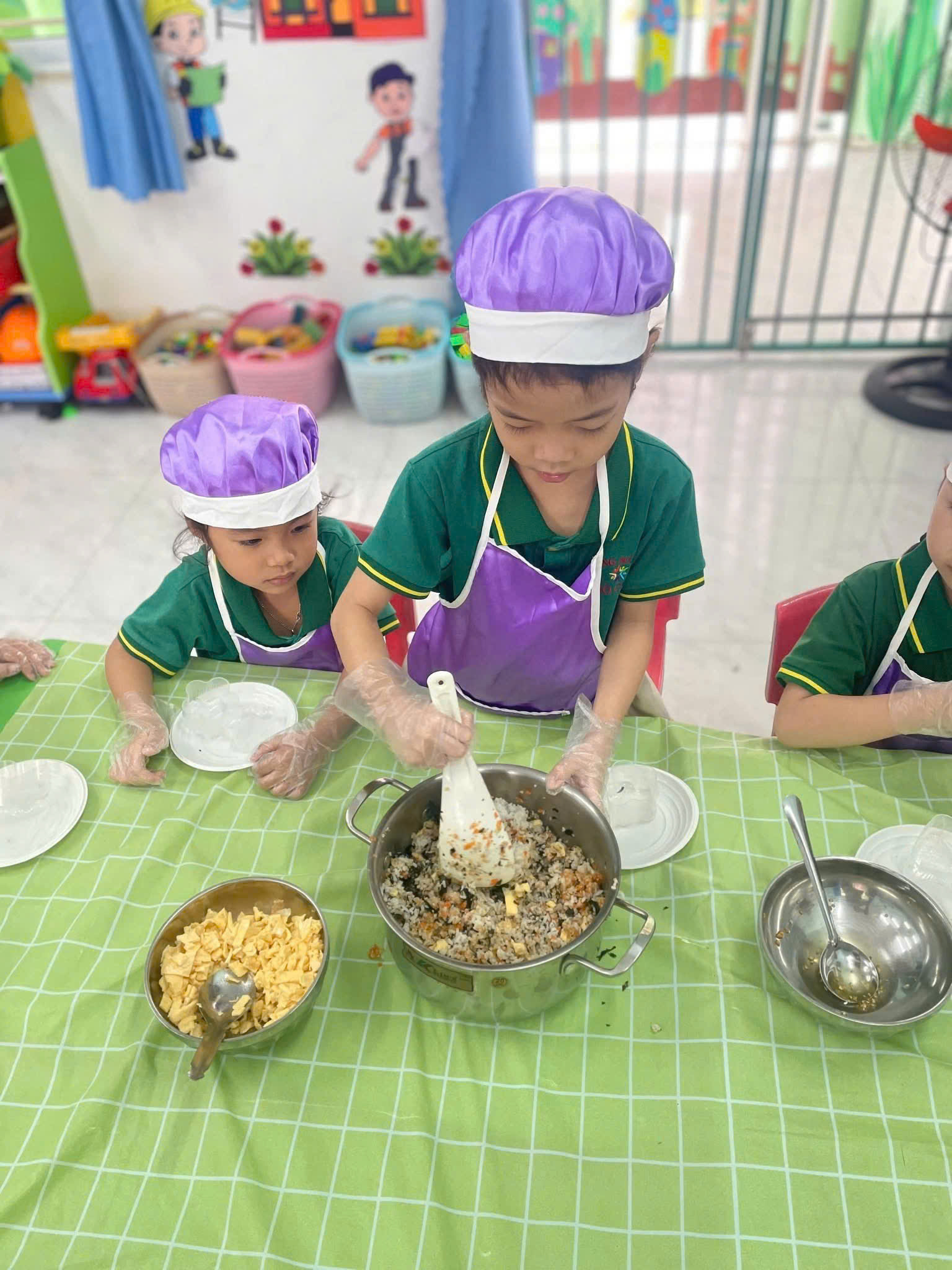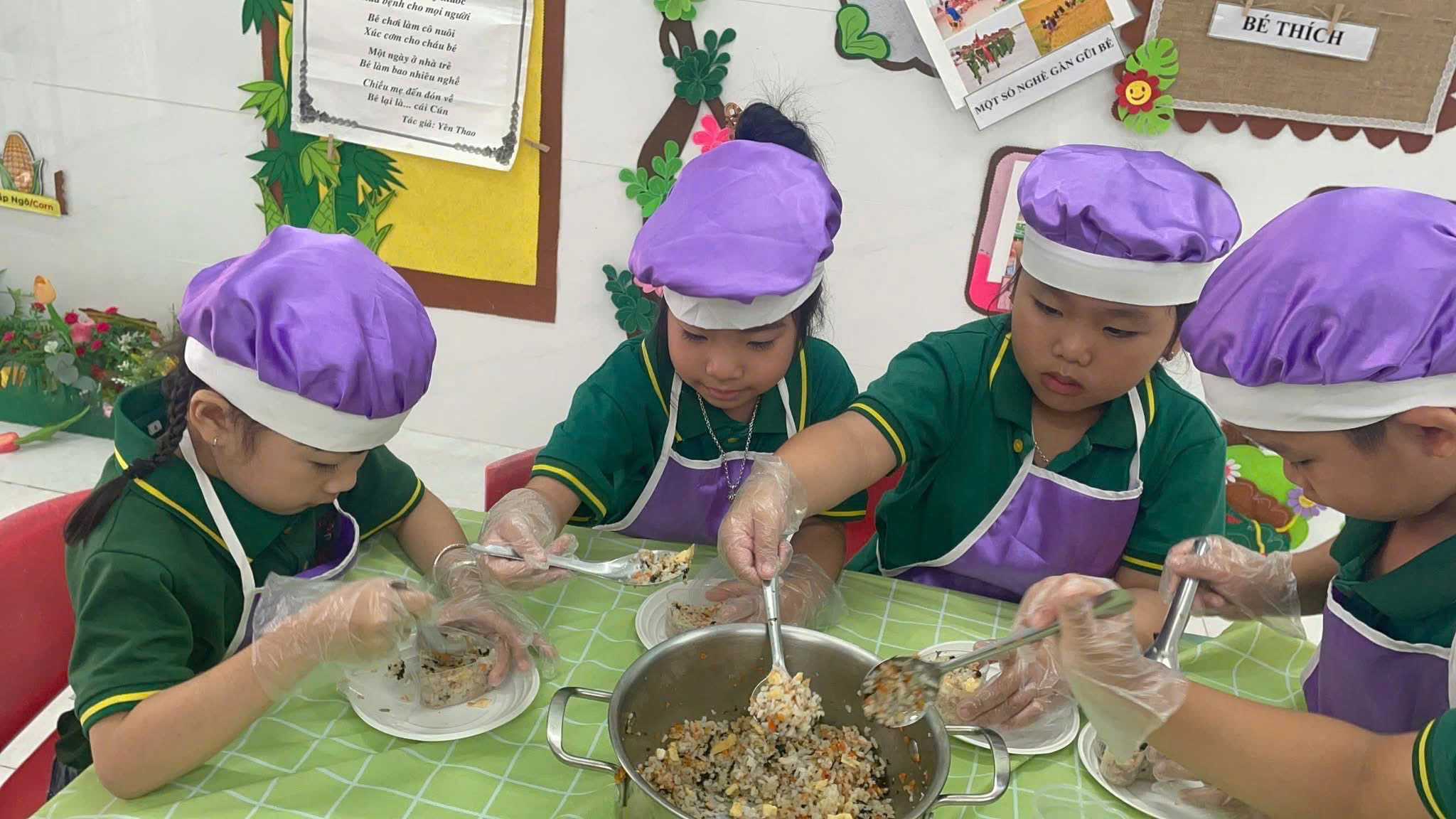 TRẢI NGHIỆM THÚ VỊ: BÉ LỚP MGL A CÙNG NHAU LÀM CƠM NẮM